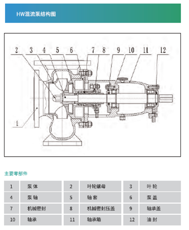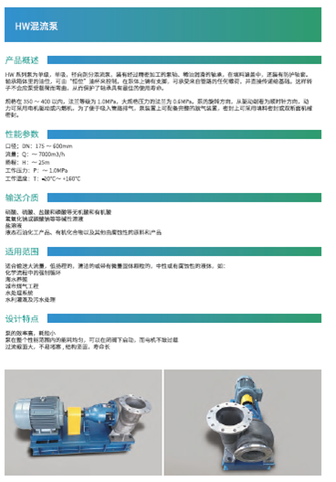 HW系列泵适合输送大流量,低扬程的,清洁的或带有微量固体颗粒的,中性或有腐蚀性的液体